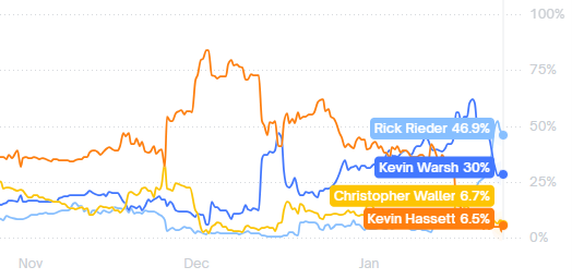 It was looking like Trump’s new Fed Chair nominee was a two man race between the two Kevins. I haven’t been especially jazzed about either of them, but then something funny happened in the last month – Rick Rieder exploded onto the scene and in the last week he’s become the sudden frontrunner.