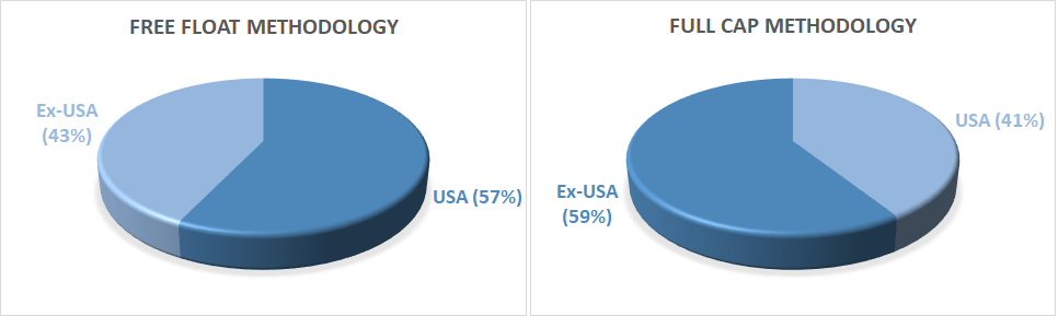 One of the most interesting aspects of many “one stop” equity or bond funds is that they’re rife with home bias and forced activity. For instance, the actual “full cap” market cap of global stocks is close to 60% foreign and 40% US. But a lot of that foreign market cap is not investable for various reasons. So funds like Vanguard Total World end up actually being closer to 60/40 US/International. This is very interesting because you are forced to be more active than the actual market cap of the global equity market simply because it’s more efficient to deviate more. But this also exacerbates the home bias of a US based investor. So in order to reduce this home bias you would have to deviate from VT, for instance, by building a 40/60 VXUS/VTI portfolio.